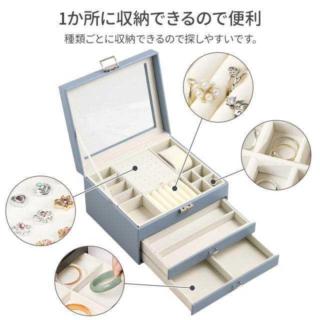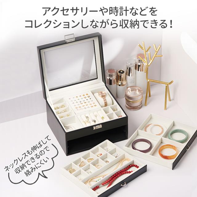 アクセサリーケース 収納 持ち運び 収納ケース アクセサリーボックス メンズ 引き出し アクセサリー ボックス ジュエリーボックス 大容量 鍵付き ネックレス リング 時計 ブレスレット おしゃれ ブラック ブルー ホワイト 小物 2段式 コンパクト