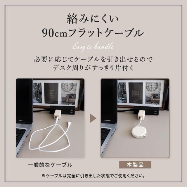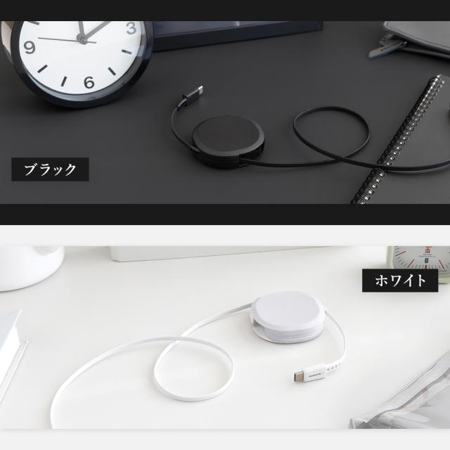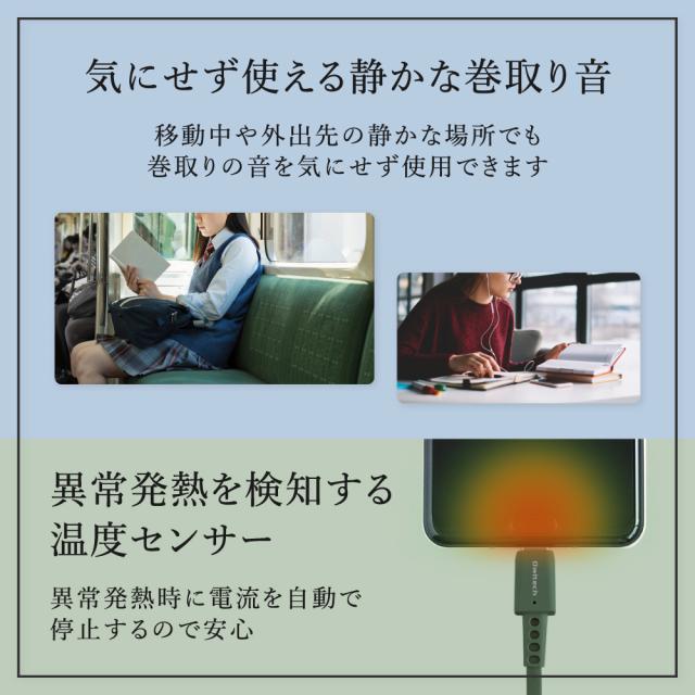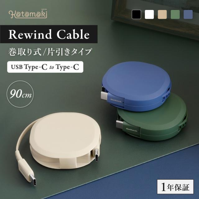 片引き巻取り式 USB Type-C to Cケーブル 90cm PD60W データ通信対応 温度センサー搭載 katamaki