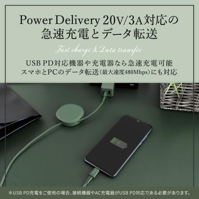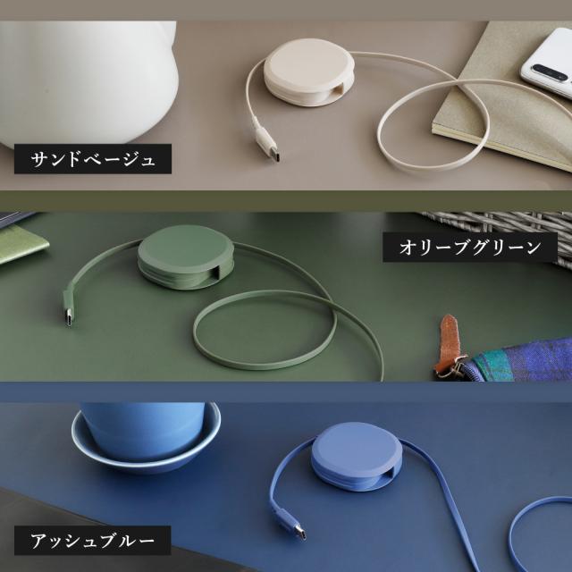 巻取り すっきり コンパクト USB-C Type-C充電ケーブル typec タイプC CtoC 充電ケーブル iPhone iPhone15 iPhone15Plus iPhone15Pro iPhone15ProMax Android アンドロイド スマホ スマートフォン 携帯 充電器 リール式 片巻 PD 60W 急速充電 90cm 0.9m ブルー ネイビー グリーン カーキ ベージュ owltech オウルテック おうるてっく
