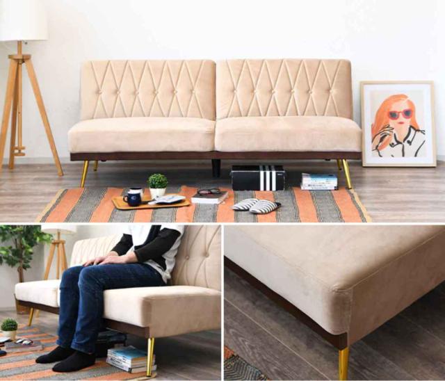 ●「ベロア調生地」を使用した上品で高級感のある、シンプルデザインで飽きのこないソファベッドです。