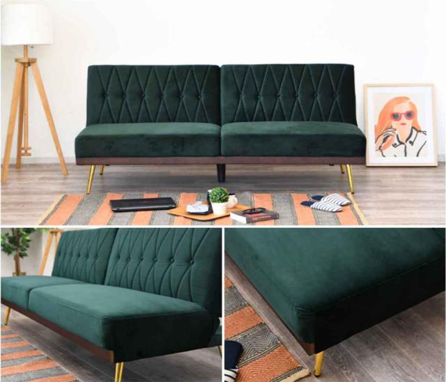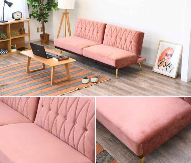 ソファベッド コンパクト リクライニング左右独立 高級感 ベロア 幅183cm ( ソファーベッド ベッド ベット 2人掛け 3人掛け 上品 エレガント リビング おしゃれ 完成品 )