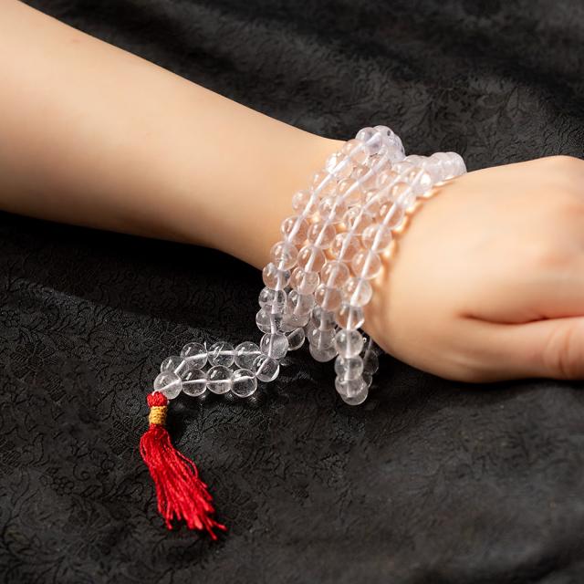 【送料無料】 インドの数珠 108珠 天然水晶 クリスタル 約50cm / ネックレス 首飾り アジア エスニック アクセサリー アンクレット ピアス リング ビンディー