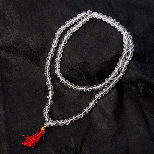 インドの数珠 108珠 - 天然水晶 クリスタル - 約50cm / 数珠、インドの数珠、ネックレス、首飾り アクセ 【インドとアジアのアクセサリー