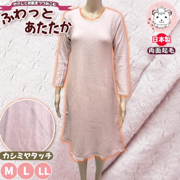 あったか インナー 発熱 8分袖シミーズ レディース ふわっとあたたか カシミヤタッチ 両面起毛 秋冬 長袖 シュミーズ 日本製 M/L/LL