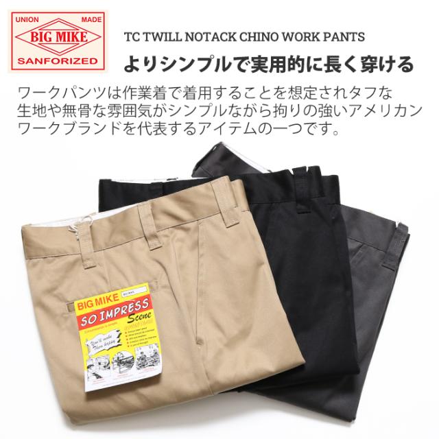 BIGMIKE ビッグマイク TCツイル ノータック ワーク チノパンツ TC TWILL NOTACK CHINO WORK PANTS [Lot/102337200] チノパン パンツ ボトムス ズボン カジュアル メンズ 大人