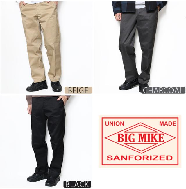 BIG MIKE ビックマイク チノパン パンツ ズボン メンズ ワーク ベージュ ブラウン グレー ブラック チャコール 伝統 定番 趣味 アメカジ アウトドア カジュアル ブランド シンプル きれいめ 大人 紳士 男性 20代 30代 40代 50代