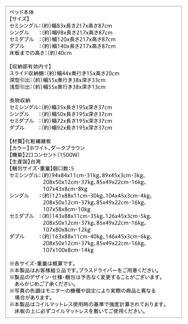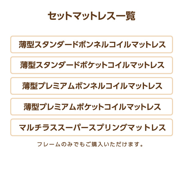 ※本製品はコイルマットレス使用時の基準で強度計算されております。床板の上に必ずコイルマットレスを敷いてご使用ください。