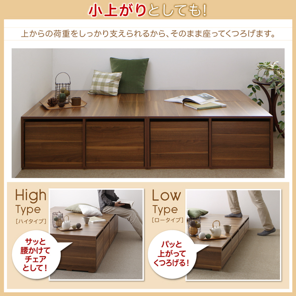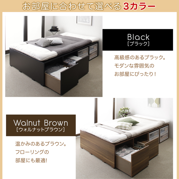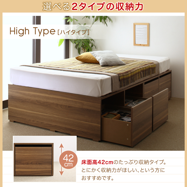 〔組立設置料込み〕布団で寝られる 大容量収納ベッド 〔Semper〕センペール 〔薄型スタンダードポケットコイルマットレス付き〕 引き出し4杯付 ハイタイプ シングル 〔フレーム色〕ウォルナットブラウン 【北海道・沖縄・離島配送不可】