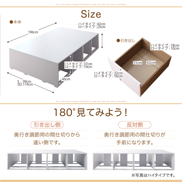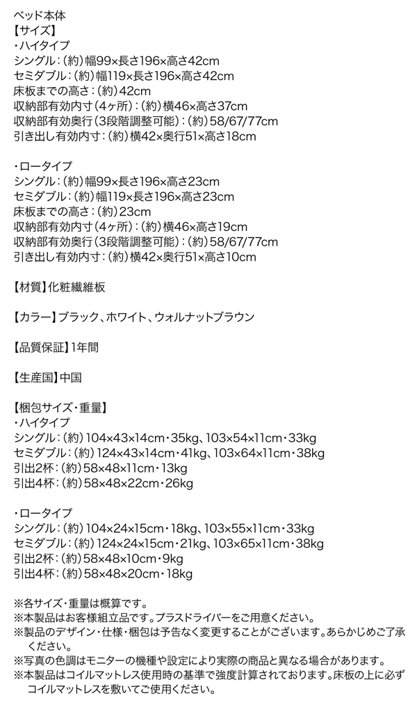 セミダブル:(約)幅119x長さ196x高さ42cm