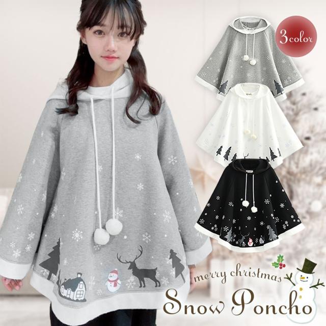 【在庫限り】クリスマス スノー ポンチョ ホーリーナイト ポンチョクロース ロリータ ポンポン 全3カラー サンタクロース トナカイ Snow サンタさん コスプレ 衣類 リアル 本格的 誕生日 室内 装飾 メリークリスマス クリスマス用品 可愛い