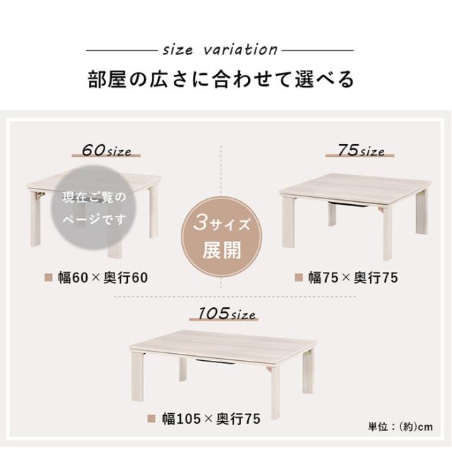 こたつ シンプル カジュアルコタツ(折脚) KOT-7350-60 インテリア テーブル 正方形 コンパクト 一人暮らし リバーシブル