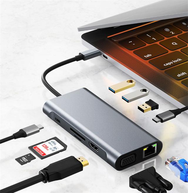 ドッキングステーション 10in1 USB拡張 USBハブ usbポート type-c接続 3.0搭載 軽量設計 コンパクト 高速