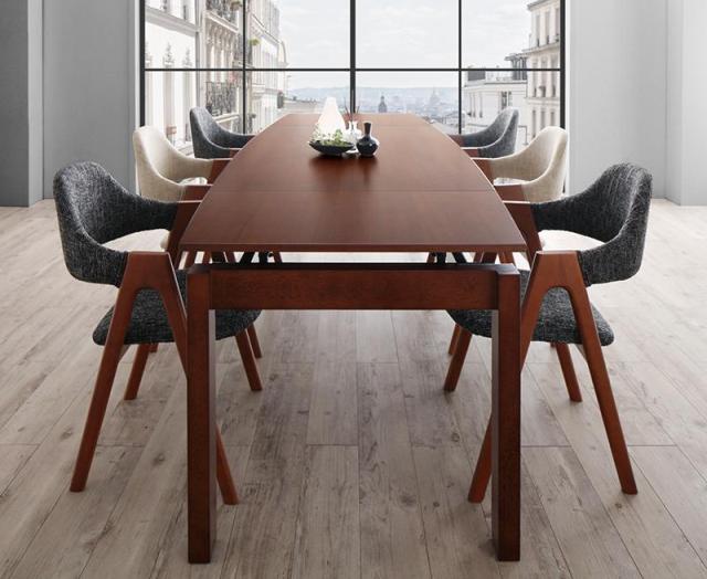 【組立設置料込み】北欧テイスト 天然木ウォールナット材 伸縮ダイニング 【KANA】カナ 7点セット(テーブルW140-240+チェア6脚) 【チェア色】ミックス(チャコールグレー2脚+サンドベージュ4脚)