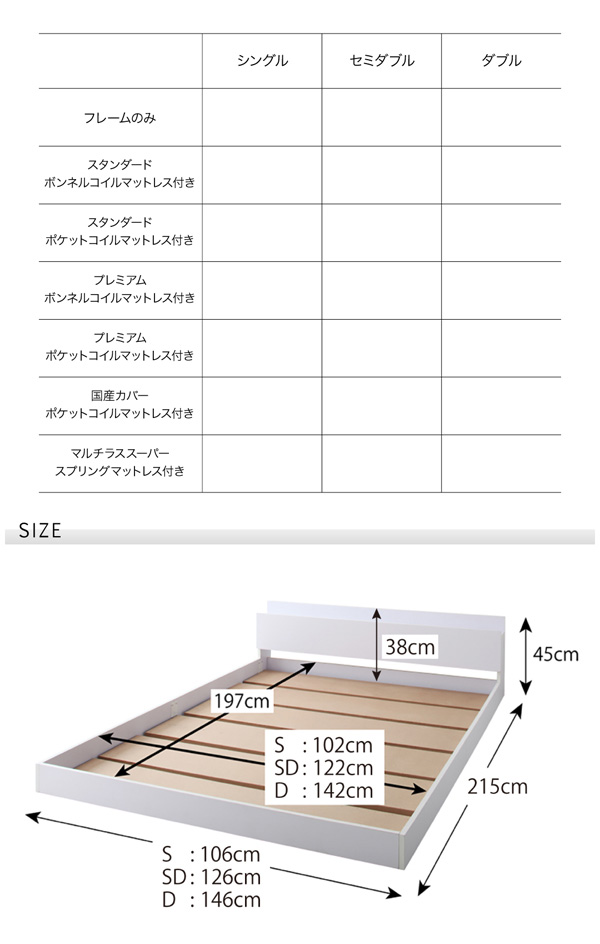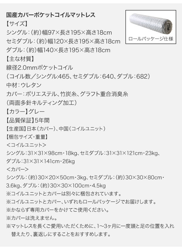 ※本製品はコイルマットレス使用時の基準で強度計算されております。床板の上に必ずコイルマットレスを敷いてご使用ください。