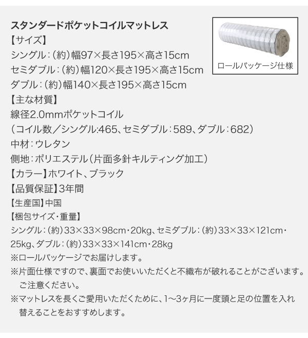 ※マットレスを長くご愛用いただくために、1〜3ヶ月に一度頭と足の位置を入れ替えることをおすすめします。