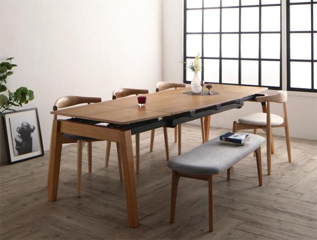 ダイニングセット/ダイニングテーブル/ダイニングチェア/ダイニングベンチ/伸縮式/エクステンションテーブル/天然木/木製