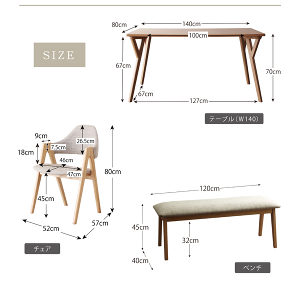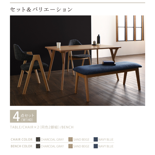 セット内容:テーブル(W140)×1、チェア×2、ベンチ×1