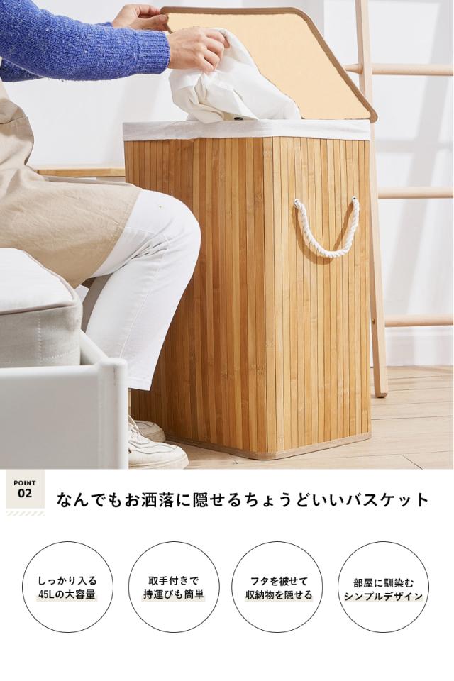ランドリー バスケット バンブー ラック ゴミ箱 45リットル 洗濯カゴ おしゃれ 収納 折りたたみ 大容量 インテリア 雑貨 北欧 ナチュラル