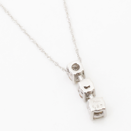 プラチナダイヤモンドペンダント スリーストーンペンダント 4月誕生石 プラチナスクリューチェーンネックレス 永遠の輝き