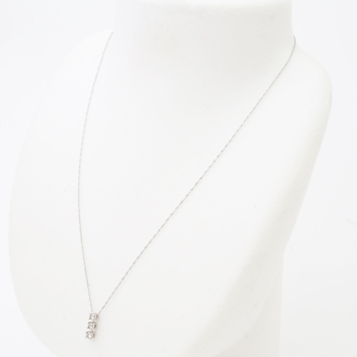 動きにあわせて可憐に揺れるスリーストーンデザインが、身に着ける人の胸元をより一層、魅力的に輝かせます。