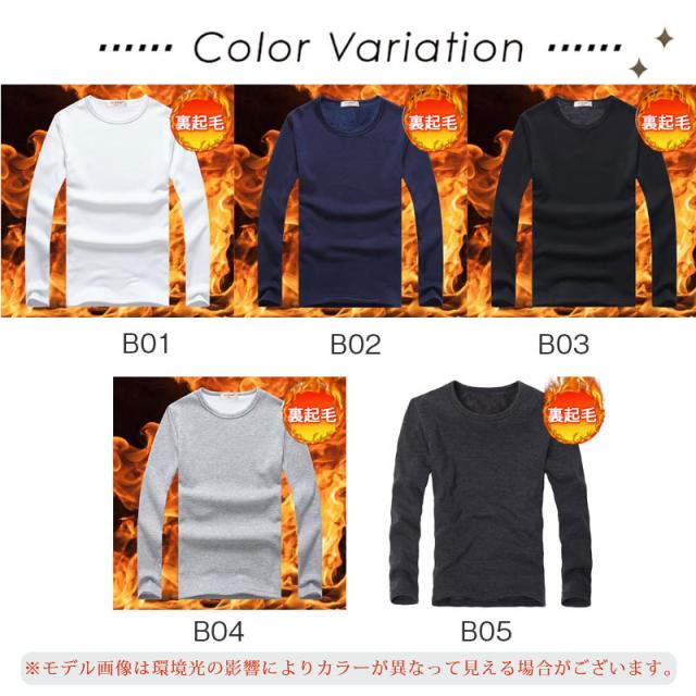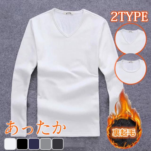 インナー シャツ 防寒 防寒着 メンズ 裏起毛 トップス 無地 長袖 カットソー ルームウエア Tシャツ あったか 厚生地 暖 冷