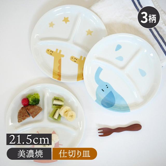 丸型ランチプレート 21.5cm KIDSアニマル かわいい こども用 こども食器 キッズ食器 アニマル ランチプレート プレート 仕切り皿 お皿 皿 食器 ワンプレート 大皿 ディナープレート お子様ランチ