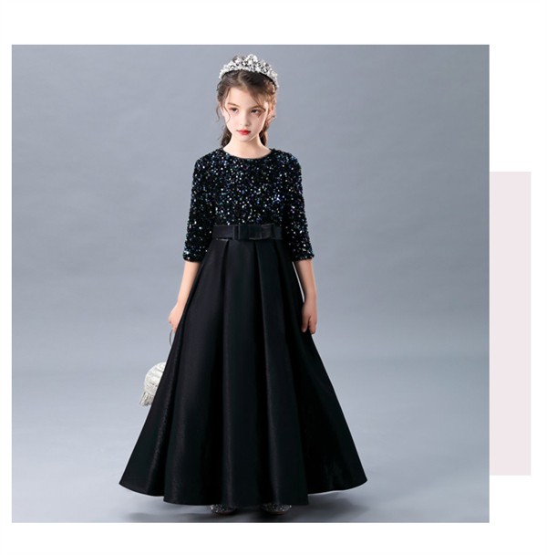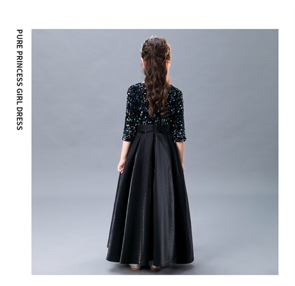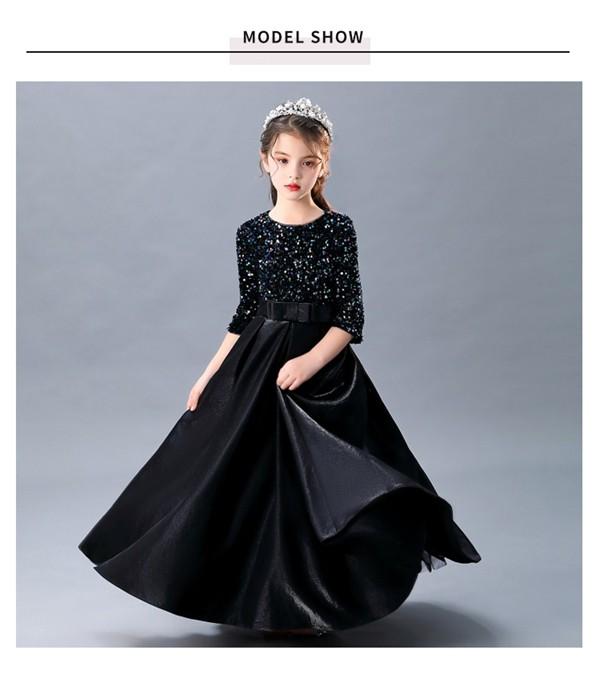 ピアノ発表会 ドレス キッズ キッズドレス ワンピース ロング 子供ドレス 五分袖 キラキラ お姫様 上品 可愛い エレガント 女の子 結婚式 子供 フォーマル 大人っぽい 誕生日 音楽会 パーティー 中学生