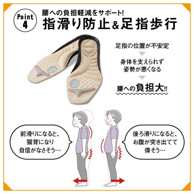 ・母趾球に重心を置くことで、正しい姿勢をアシスト。
