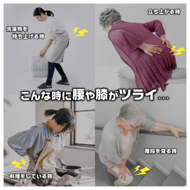 ■立ち座りが頻繁で腰がツラい… ■毎日家事に追われて立ちっぱなし...■一日の終わりはいつも足腰ガクガク... ■片付けや子供の抱っこで腰が痛い... ■O脚を改善して膝や腰をラクにしたい... |