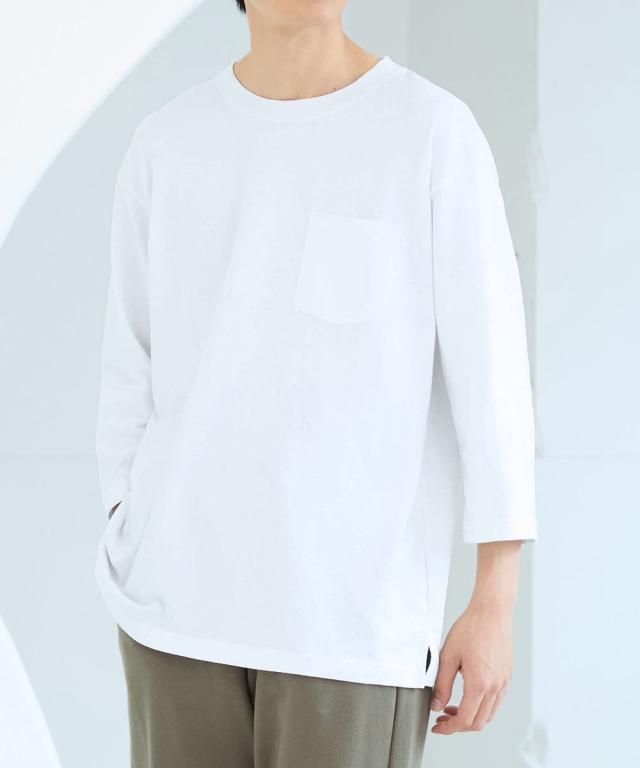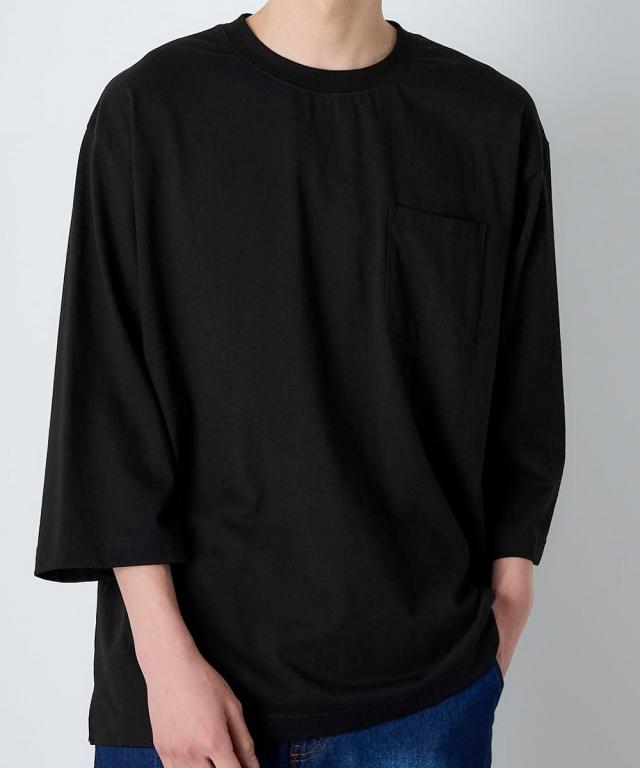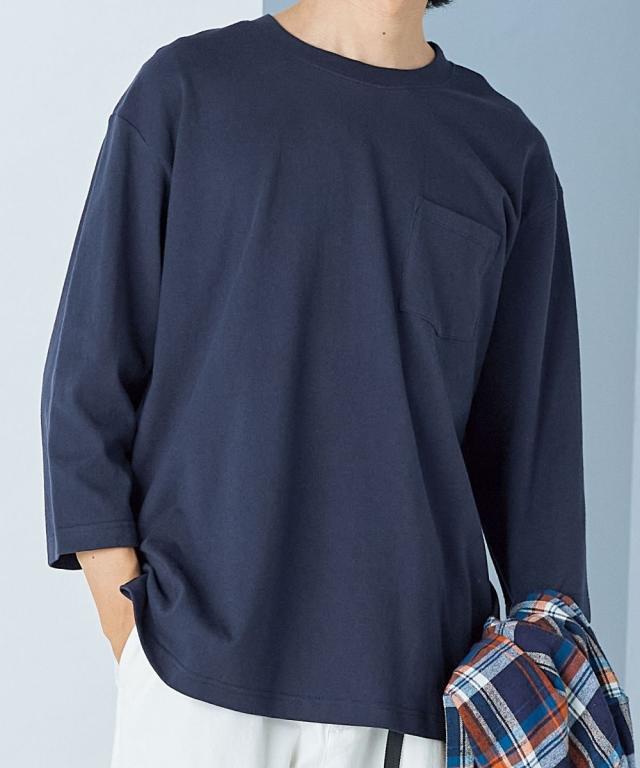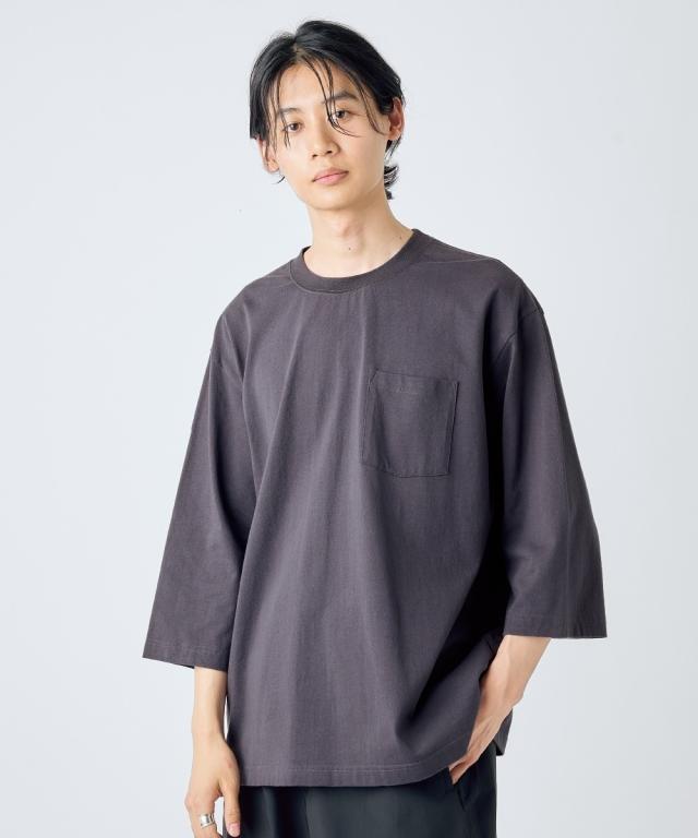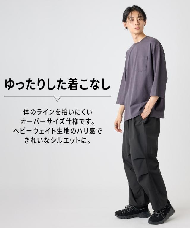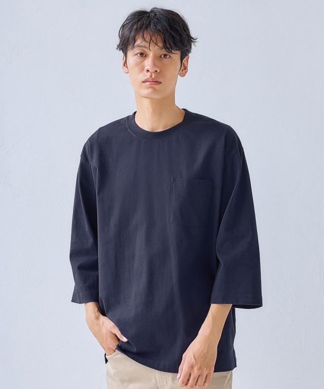 綿100%ヘビーウェイトオーバーサイズ7分袖Tシャツ(胸ポケット付)