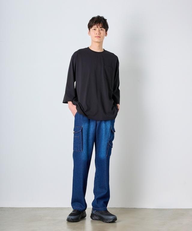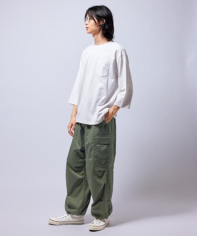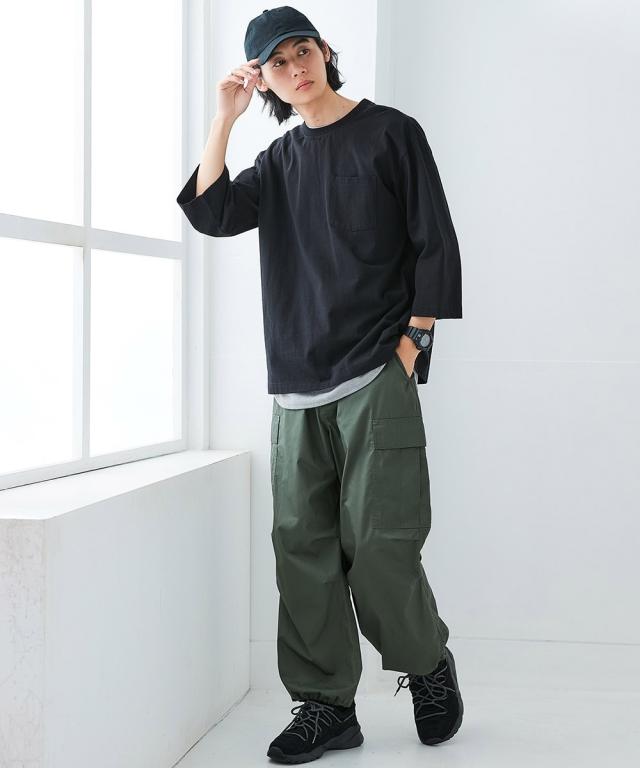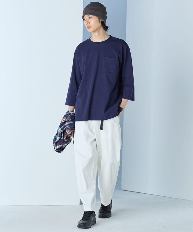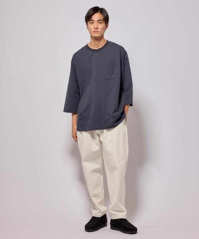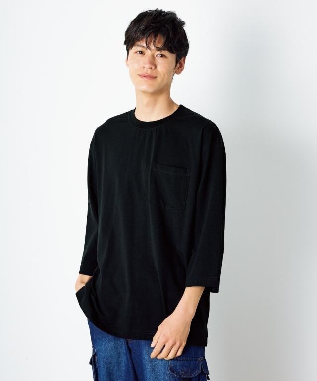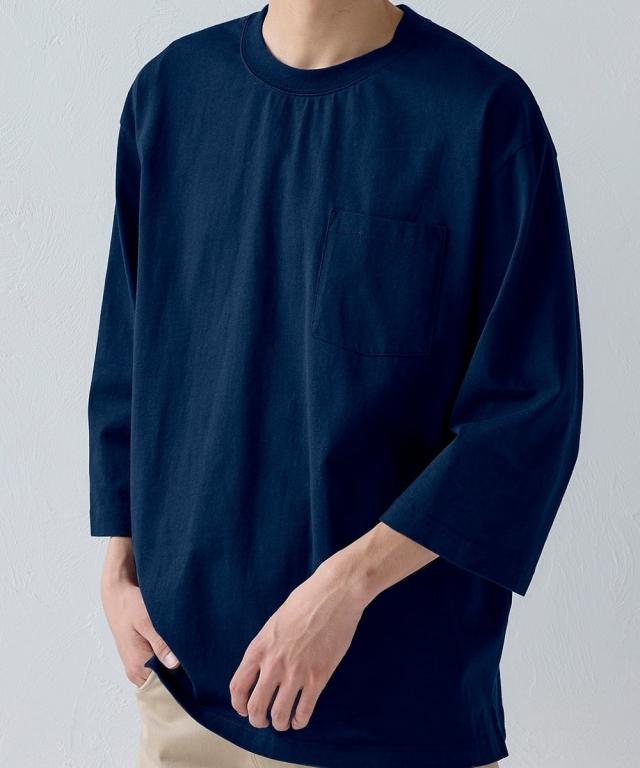 綿100%ヘビーウェイトオーバーサイズ7分袖Tシャツ(胸ポケット付)