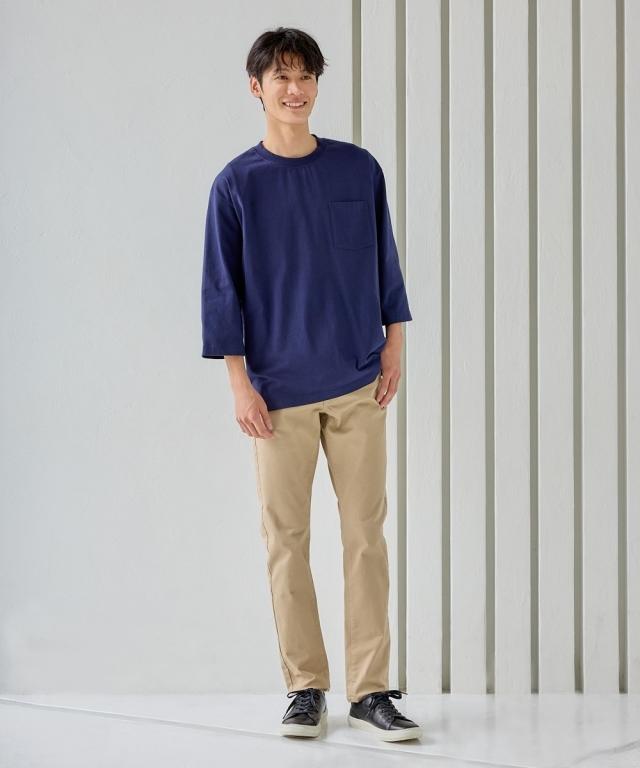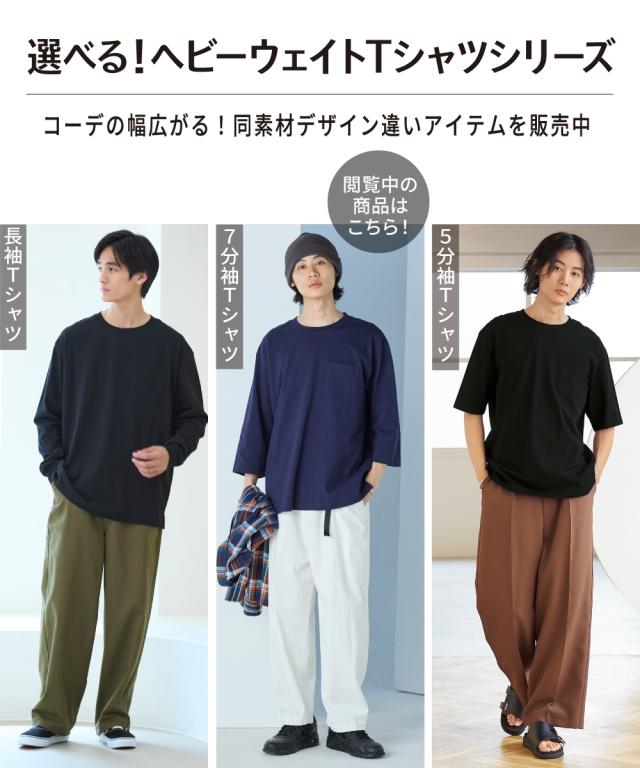 丈夫で型崩れしにくく、身体のラインも拾いにくいヘビーウェイトコットンの7分袖Tシャツ。