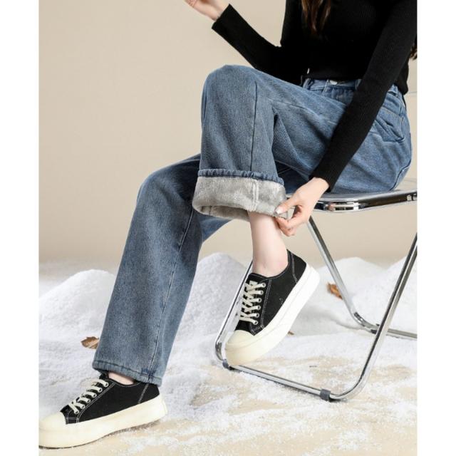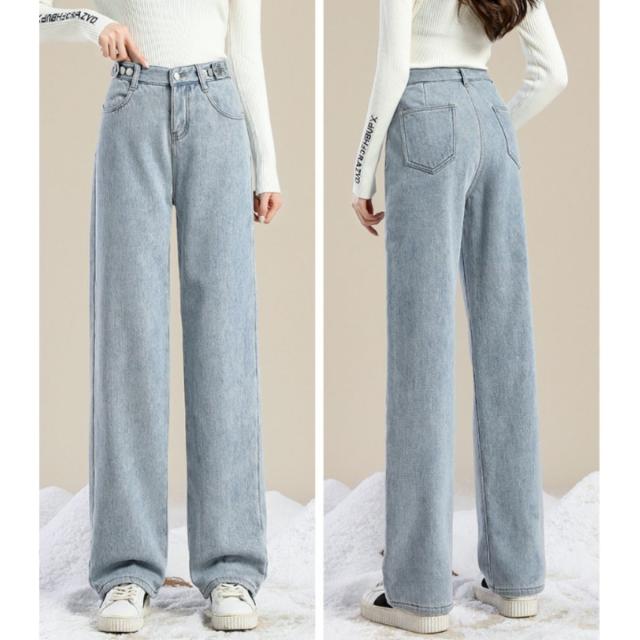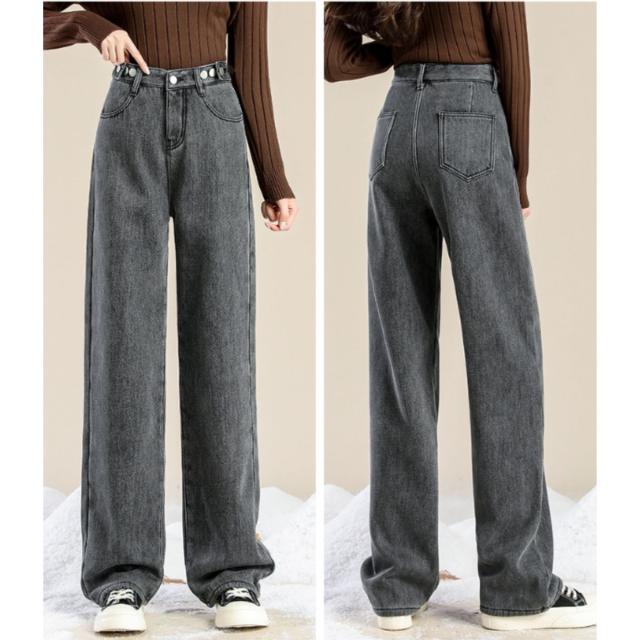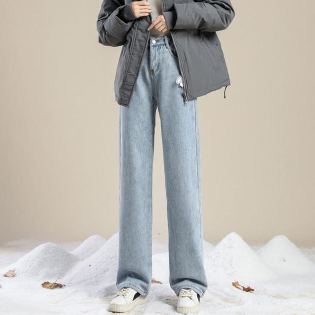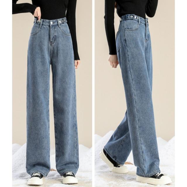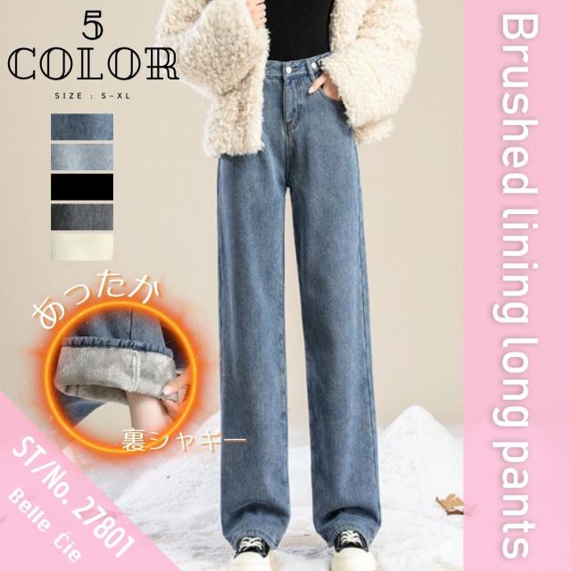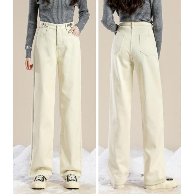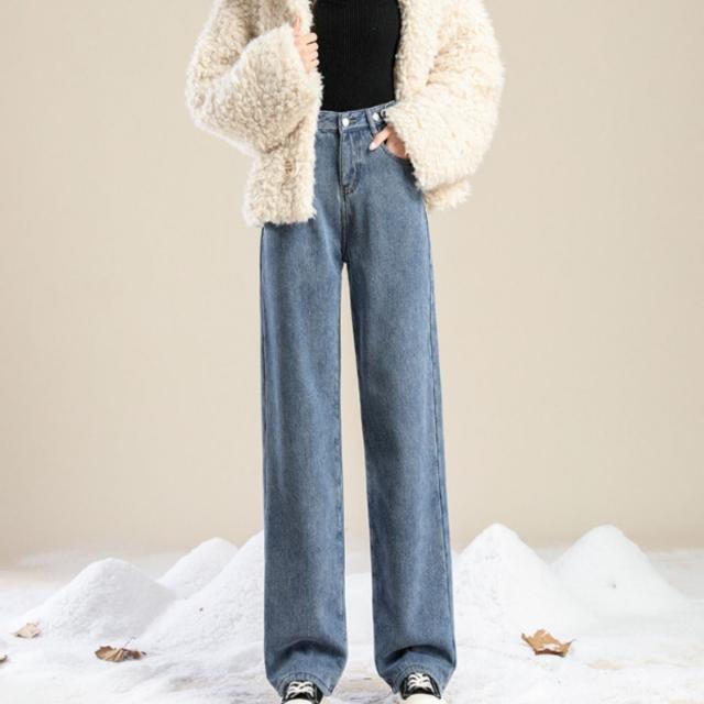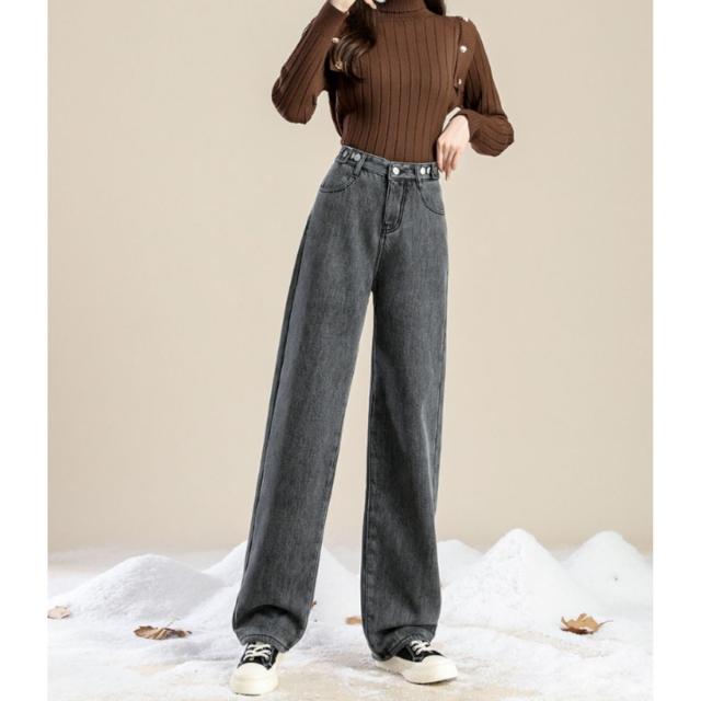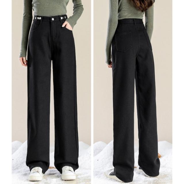 裏シャギー デニムパンツ ジーパン レディース 裏起毛 ジーンズ ワイドパンツ ゆったり ワイド ストレート バギー ハイウエスト パンツ 裏ボア フリース 起毛 韓国ファッション 防寒 秋冬 冬 温かい 服 ズボン 大きいサイズ 韓国 黒 グレー かわいい ロングパンツ