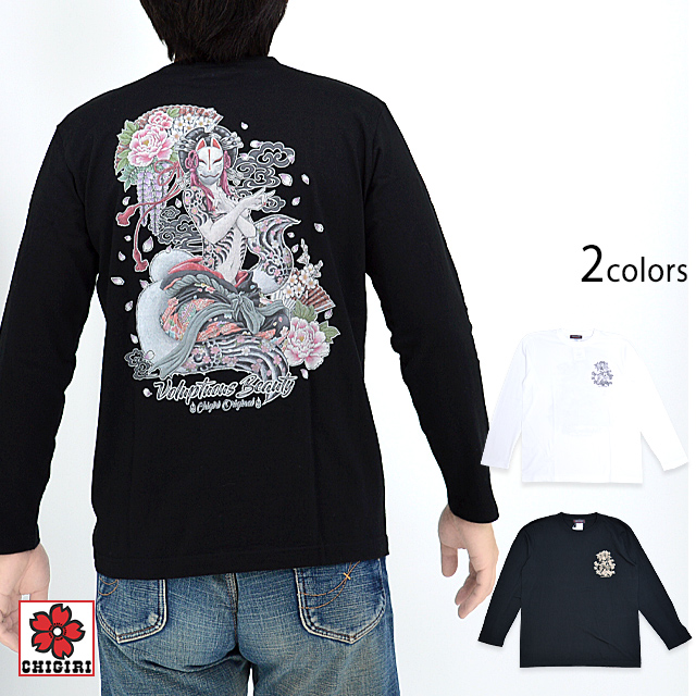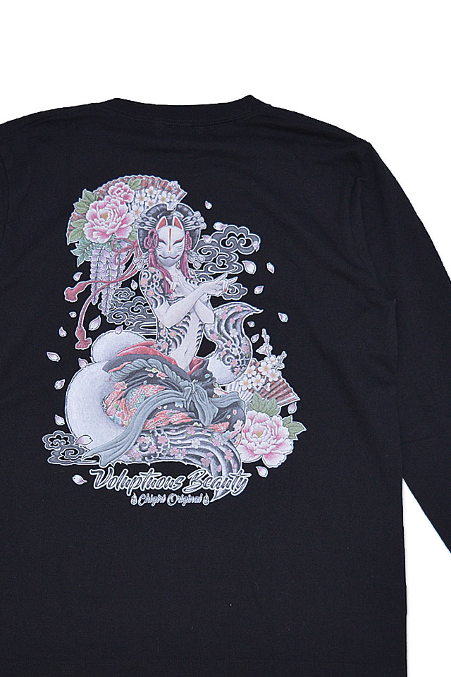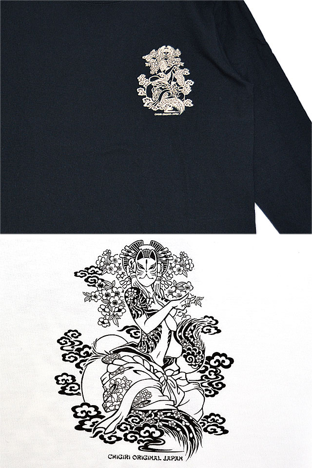 手描き風狐ガール インクジェットロングTシャツ CHIGIRI CHL56-651 ちぎり チギリ 和柄 和風 長袖