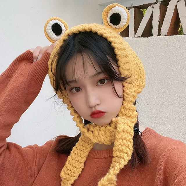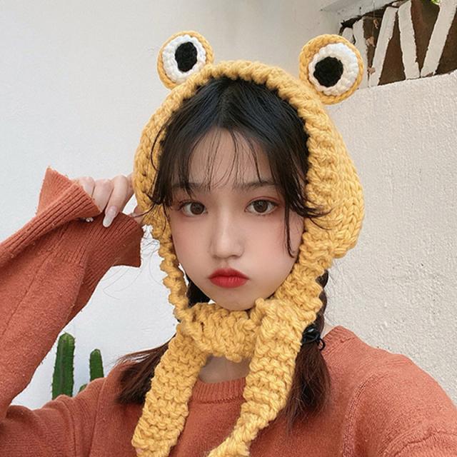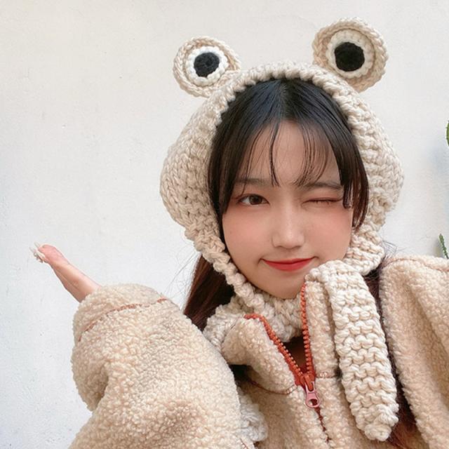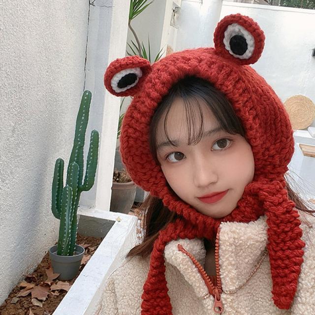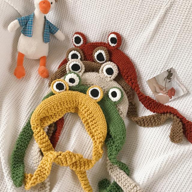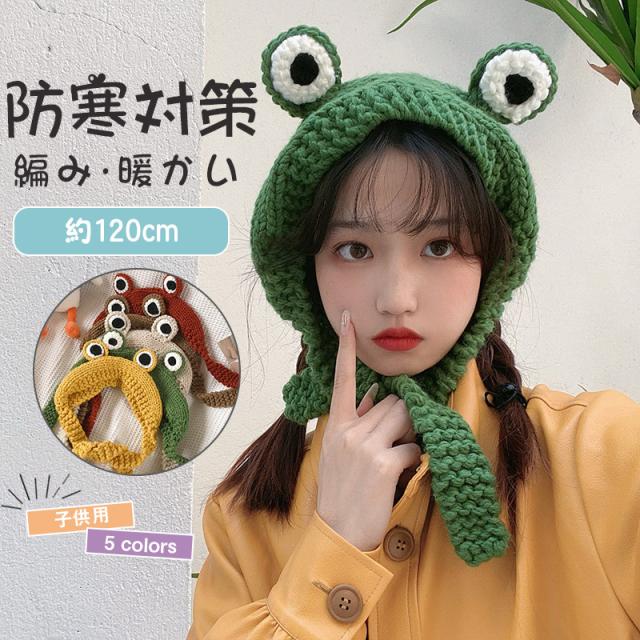 耳当て イヤーマフ ヘッドバンド ヘアバンド キッズ ベビー 男の子 女の子 イヤーウォーマー カエル 目 ニット編み 暖かい 防
