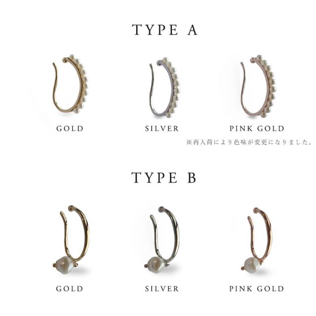 イヤーカフ イヤリング 片耳用 レディース ニッケルフリー 金属アレルギー 4種類 4タイプ 3カラー パール ゴールド シルバー ピンクゴールド 大きめ シンプル カジュアル デイリー オケージョン 結婚式 パーティー 女性 プラスチックパール 30代 40代 50代 ブランド