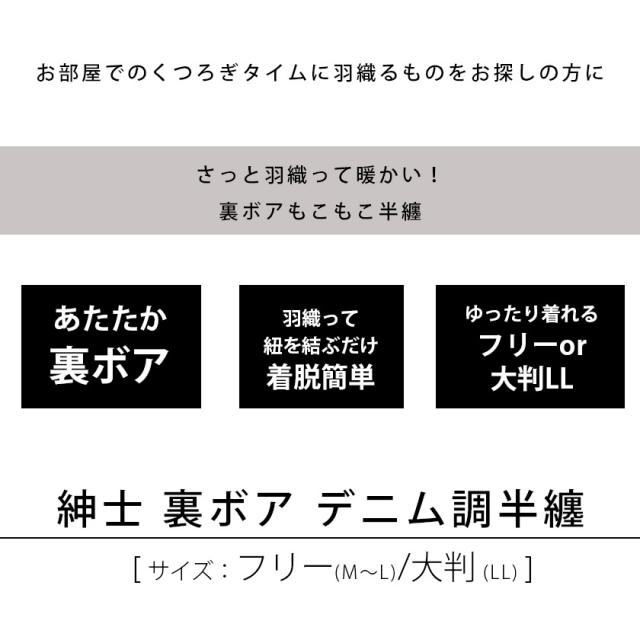 【クリスマス ギフト無料】はんてん 半纏 メンズ 暖か 裏ボア 表ダンガリー デニム Men’s 紳士 フリー M〜L 大判 男女兼用 大きいサイズ LL 羽織もの 冬 暖かい もこもこ シンプル 贈り物 プレゼント ギフト