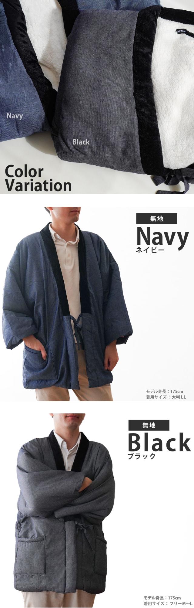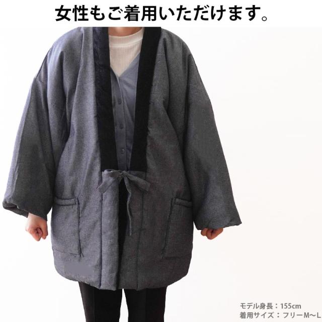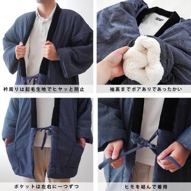 [keyword| はんてん 半纏 半天 袢天 袢纏 羽織 羽織物 ルームウェア 部屋着 ガウン ラウンジウェア 長袖 前開き 紐 ポケット ボア 裏ボア フランネル 綿入り ふわふわ もこもこ あたたかい 暖かい 秋 冬 冬用 デニム ジーンズ 贈答品 ギフト プレゼント クリスマス 誕生日 バースデー メンズ レディース ウィメンズ ユニセックス 男女兼用 大人 紳士 婦人 フリーサイズ M L LL シンプル おしゃれ 無地 ヒッコリー ストライプ 着やすい ネイビー ブラック 紺 藍色 黒 グレー 寒さ対策 節電]