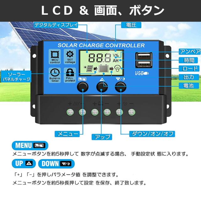 ・ビジュアルLCDグラフィックシンボル、セットアップと操作が簡単なので、家庭、工業用および商業等に適しているモードとパラメータの設定を簡単に切り替えることができます。