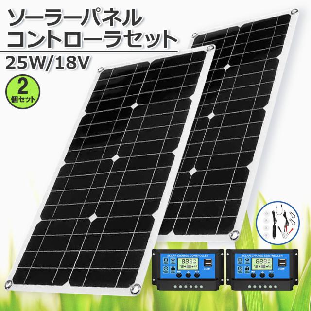 ソーラーパネル ソーラーチャージャー 2個セット 太陽光発電 25w 18V 家庭用蓄電池 デュアルUSBポート アウトドア ポータブル バッテリー 充電器 車 ライト 防災 キャンピングカー 船舶 車中泊 キャンプ 軽量 省エネ 停電対策 過充電 放電防止 災害時
