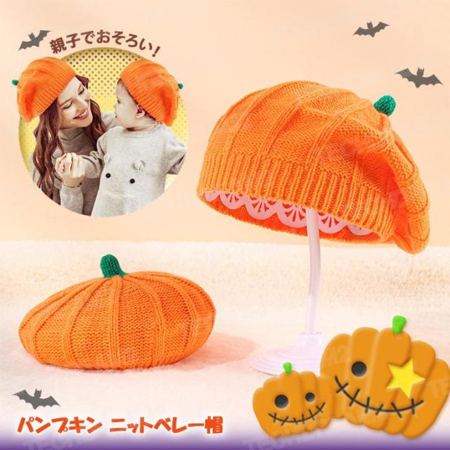 ベレー帽 レディース キッズ ニット パンプキン 大人 親子 子ども 帽子 ハロウィン イベント コスプレ 衣装 仮装 かぼちゃ かわいい