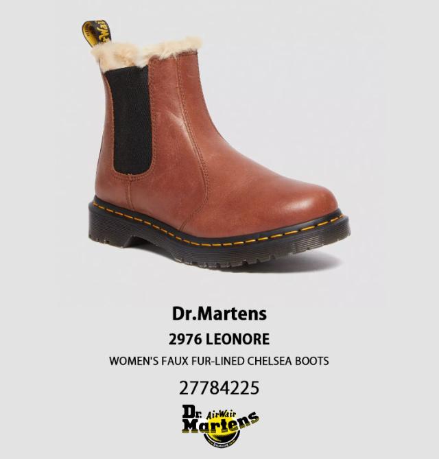 Dr.Martens ドクターマーチン サイドゴア レザーシューズ 2976 LEONORE WOMEN’S FAUX FUR-LINED CHELSEA BOOTS 27784225 Tan FARRIER