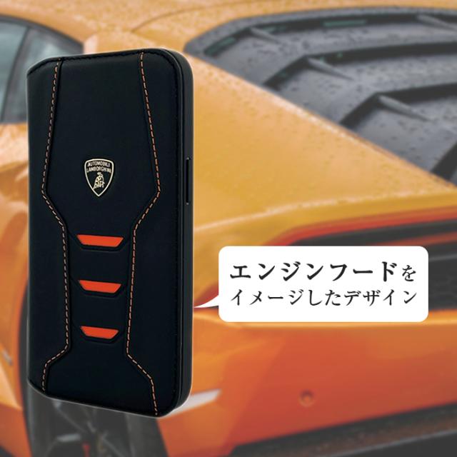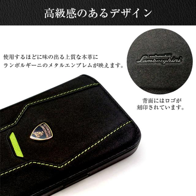 使用するほどに味の出る上質な本革を使用したランボルギーニの手帳型ケース。