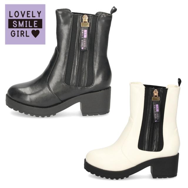 ジュニア ブーツ 女の子 ヒール サイドゴア ショートブーツ 厚底 美脚効果 おしゃれ ブラック 黒 ホワイト ラブリースマイル 2501