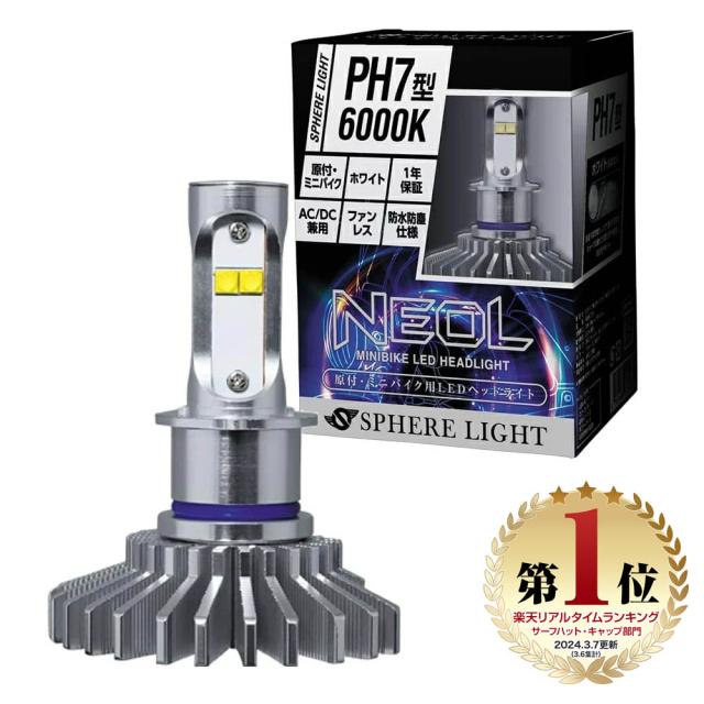 【楽天ランキング1位入賞】 スフィアライト NEOL PH7型 6000K ミニバイク用 LED ヘッドライト DC/AC兼用 6000K ホワイト 2600lm (High) / 2000lm (Low) 1年保証 SPHERELIGHT SBNR060