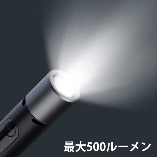 最大出力500ルーメンの強力なライトにスタン機能と、振動センサー付きブザー機能を備えた多機能フラッシュライト