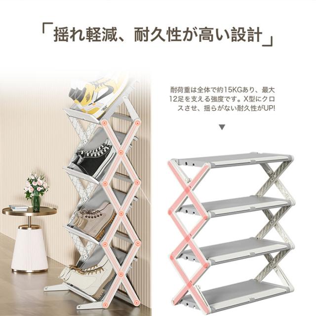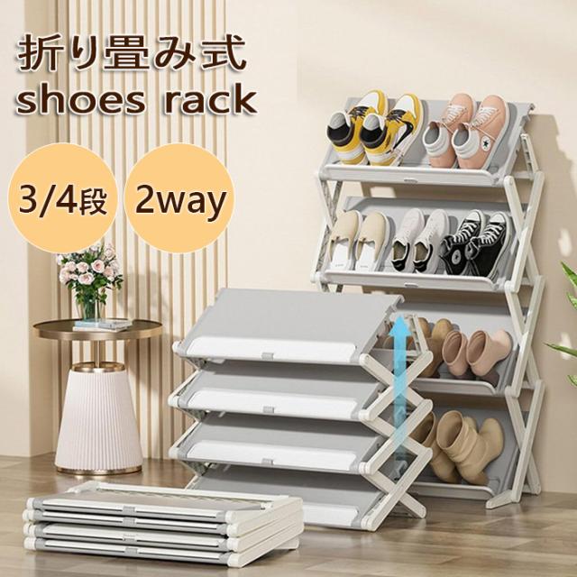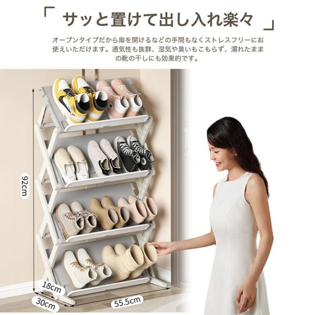 「クーポン配布中」「即納」3段/4段 シューズラック スリム シューズラック 省スペース シューズラック 折りたたみ シューズボックス 大容量 靴箱 靴棚 下駄箱 靴収納 靴置き 玄関 薄型 斜め 簡易靴ラック 組立不要 コンパクト 通気性 スリッパ ブーツ収納