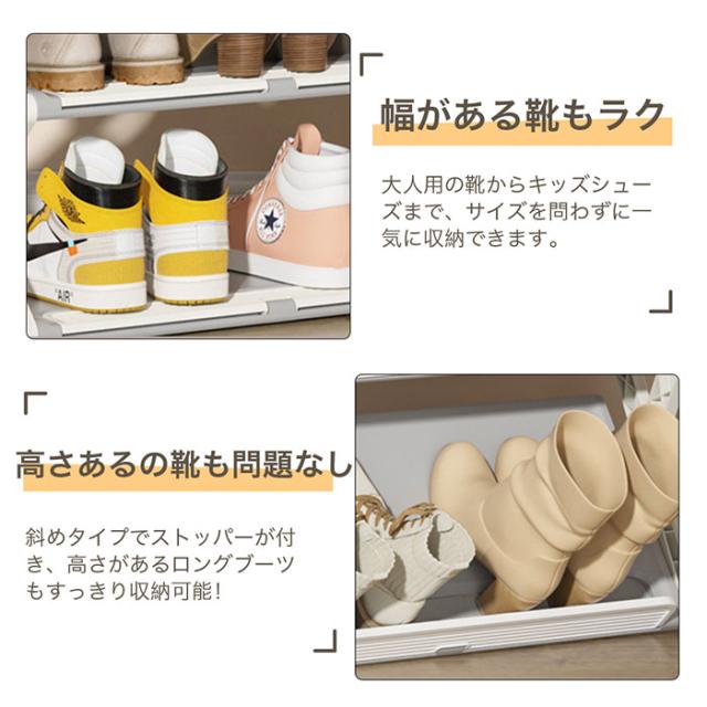 ※ご注意:シューズのサイズや形状によっては収納できないものもあります。また、収納可能数はシューズやヒールのサイズによって変わります。予めご了承ください。