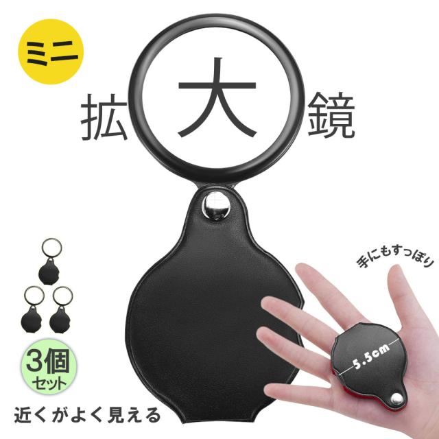 拡大鏡 ミニ拡大鏡 虫眼鏡 3個セット 虫めがね 小型 ミニルーペ 折り畳み 8倍 携帯 コンパクト 持ち歩き おしゃれ ケース一体型 セットあり 便利 観察 読書 お子様