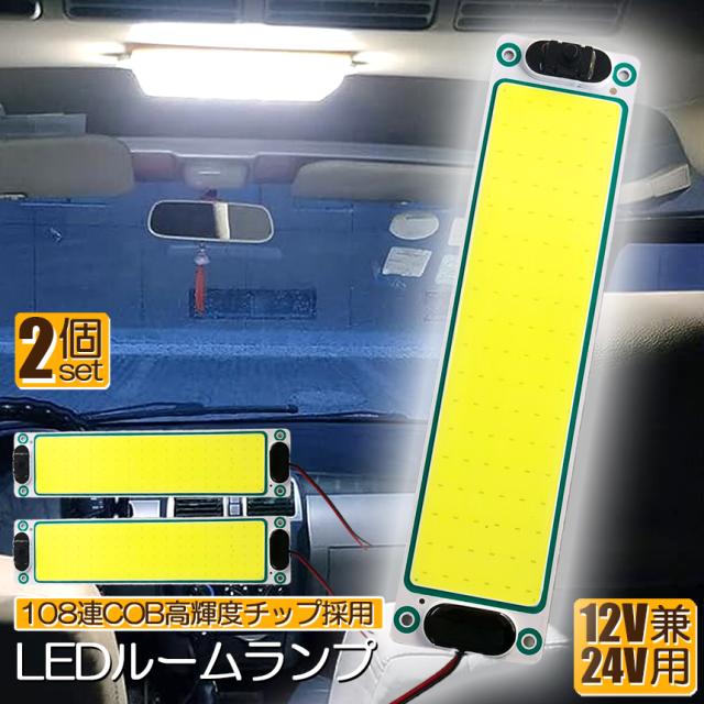 ルームランプ LED 室内灯 2個セット 貨物灯 車内照明 汎用 小型車 キャンパー トラック 12V 24V マーカーランプ キャンピングカー テントライト 作業車用 COB素子 PCカバー 電源スイッチ付き ネジ 両面テープ付き カバーなし
